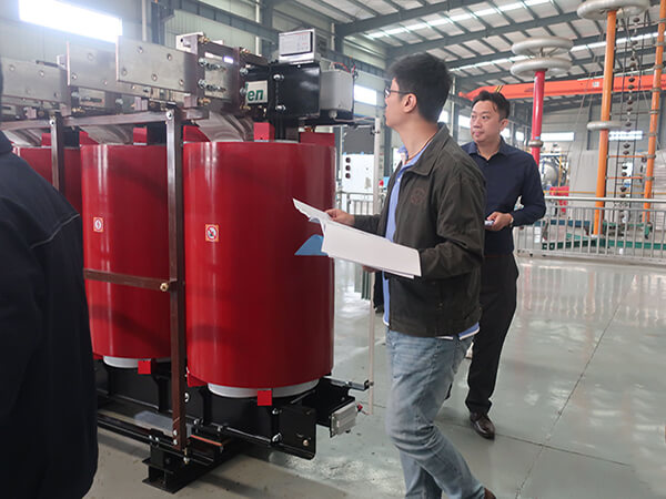 我們的新加坡來(lái)到了工廠驗(yàn)收干式變壓器。